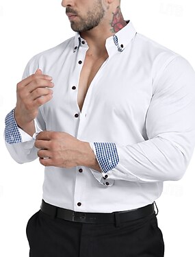 Per uomo Camicia Camicia elegante Camicia button-down Camicia non stiro Camicia con Bottoni Blocco di colori Casuale Quotidiano Blu chiaro Bianco Vino Kaki Manica Lunga Collo ripiegato Primavera