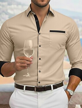 Per uomo Camicia Maglietta informale Camicia con bottoni Abbronzante Ufficio e carriera Ricevimento di matrimonio Nero Bianco Vino Rosso Manica lunga Bavero Primavera & Autunno Abbigliamento Collage