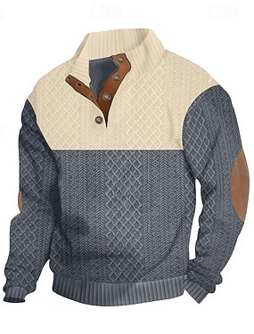 Per uomo Maglia cachi e nero Nero Verde militare Blu marino Marrone Colletto Mao Blocco di colori Renna Patchwork Sport & Outdoor Quotidiano Ferie Poliestere Velluto a coste Streetwear Essenziale