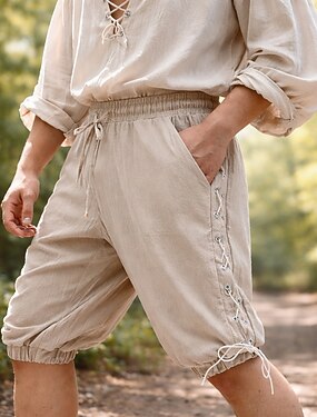 Medievale Rinascimento Pantaloni Pirata Ranger Allacciato Tinta unica Costume Per uomo Costumi da pirata Halloween Carnevale Fiera Rinascimentale LARP Adulti Shorts Tutte le stagioni