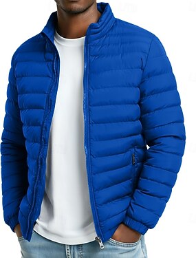 Per uomo Giacca imbottita Giacca di transizione Cerniera completa All'aperto Casuale Regolare Classico Antivento Leggero Inverno Primavera & Autunno Tinta unica Nero Rosso Blu marino Blu reale Piumino