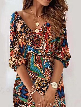 Per donna Mini abito Vestito Casual Abito a trapezio Moda Moderno Quotidiano Spiaggia Vacanza Vestibilità comoda Floreale Tropicale Manica 3/4 Scollo a V Blu Giallo Rosa Blu marino Estate Primavera