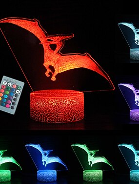 dinosauro giocattoli 16 colori 3d lampada da scrivania illusione con luce notturna telecomandata per regali per bambini decorazioni da comodino camera da letto