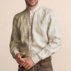Per uomo Camicia Camicia di lino Camicia Estiva Camicia da Spiaggia Semplice Vacanza Camicia hawaiana Blu Nero Bianco Rosa Manica Lunga Collo alla coreana Primavera & Estate Abbigliamento Base