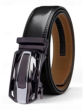 Cintura da uomo in vera pelle con fibbia ad auto – cintura elegante con cricchetto automatico di lusso per abbigliamento business, casual e formale