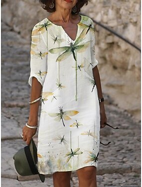 Per donna Abito Midi Finto cotone e lino Abito a trapezio Casual Quotidiano Vestibilità regolare Semplice Manica 3/4 Bavero Rosa Verde Estate Primavera Autunno