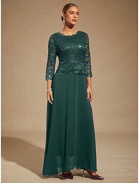 Per donna Abito maxi Vestito in Chiffon Elegante Festa serale Ospite di nozze Paillettes Pizzo Vestibilità regolare Tinta unica Manica 3/4 Girocollo Verde smeraldo