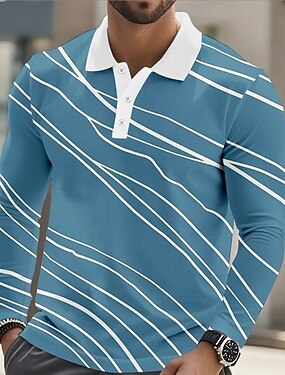 Per uomo Geometrico Linea Polo Manica Lunga Magliette polo Bavero Business Casual Athleisure Abbigliamento quotidiano Stampa 3D Bottoni Primavera Autunno Inverno Blu Verde Blu chiaro