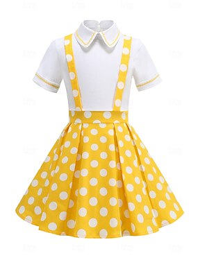 Ispirato al vintage Midi Abito a Linea Abito Swing Maniche corte Pois Linea ad A Costume Ragazze Giornata universale dell'infanzia Mascherata Vacanza Abbigliamento Quotidiano Bambini Vestito Abiti