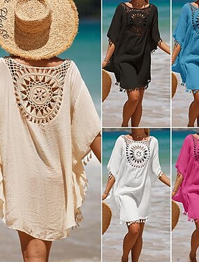 Per donna Costumi da bagno Copricostume Vestito da spiaggia Costume da bagno Uncinetto Vacanza Abbigliamento da Spiaggia Tinta unica Girocollo Maniche Corte Costumi da bagno