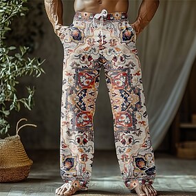 Per uomo Motivo floreale persiano Pantaloni Pantaloni Larghi Pantaloni casual Misura del girovita medio Stile Etnico Stile Boho All'aperto Vacanza Ferie Coulisse Tasche Laterali Elastico in vita