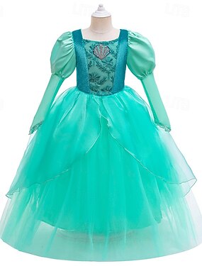 Settimana del libro 2026 Vestito da festa per bambine, tinta unita, maniche a 3/4, da spettacolo, da festa, in rete, da principessa, costume da cosplay, dolce abito a tubino in rete a metà polpaccio, abito in tulle, estate, primavera, autunno