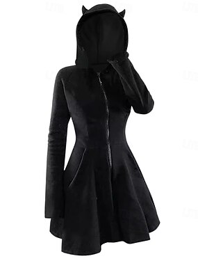Punk & Gotico Vestito Felpa con cappuccio Piccolo corno del diavolo Velluto Chiusura lampo Costume Per donna Halloween Carnevale Performance Feste Adulti Vestito Autunno Inverno