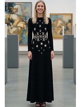 Abito Formale O-Line fino al Pavimento Abito da Sera Abito da Sera Elegante Vintage Maniche Lunghe Collo A Giro Abito da Festa di San Valentino con Cristalli Perline