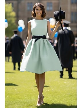 Linea ad A Lunghezza al ginocchio Abito da Ballo Vestito da Festa Abito da Cocktail Abiti da Ballo Elegante Festa Senza Maniche Scollo a Barca Ritorno a casa Cocktail party con Fiocco/Fiocchi