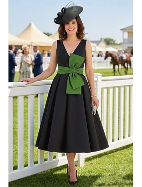 Linea ad A Lunghezza Tè Abito Derby Abiti da Cocktail Elegante Manica Lunga Colletto a Camicia Festa in giardino Matrimonio Cintura / Fascia con Fiocco/Fiocchi Pieghe