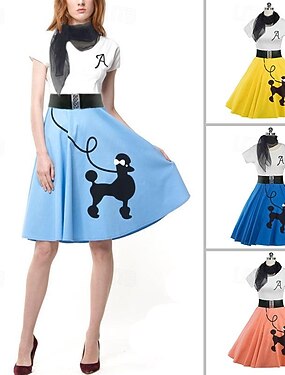 Retrò Vintage Anni 1950 Abiti Grease Vestito Abiti Gonne a barboncino Stampa Costume Per donna Carnevale Mascherata Performance Feste Adulti Vestito Cintura Sciarpa