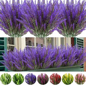 12 mazzi di fiori artificiali per la decorazione, fiori finti di lavanda romantica, piante finte per esterni, fiori di seta, arbusti resistenti ai raggi UV, piante verdi finte anti-sbiadimento per