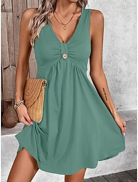 Per donna Mini Abito Abito a trapezio Abito Estivo Casual Quotidiano Vestibilità regolare Semplice Senza Maniche Scollo a V Blu Nero Verde Grigio Estate