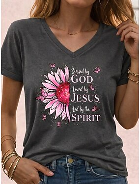 maglietta da donna stampa floreale basic manica corta top regolari scollo a V casual vacanza fine settimana blu viola verde