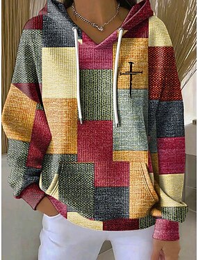 Per donna Felpa con cappuccio Stampato Tasca Frontale Grafico Geometrico Caldo Vintage Casual Manica Lunga Con Cappuccio Top Regolari Casuale Streetwear Abbigliamento Quotidiano Rosa Viola Arancione