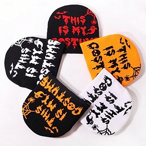 Per uomo Unisex Berretto Cappelli Invernali Berretti 骷髅头毛线帽 Cappello lavorato a maglia Nero / arancio Bianco Fibre Acriliche Jacquard Lavorato a maglia Accogliente Halloween Abbigliamento quotidiano
