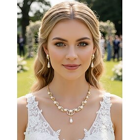Set di collana e orecchini in lega di perle finte da donna, colori oro e argento, design elegante con dettagli in cristallo, perfetto per matrimoni e cene formali