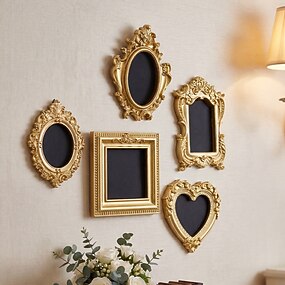 Set di 5 decorazioni murali vintage dorate in rilievo – ornamenti in resina dipinti a mano per cornici, decorazioni murali fai da te per la casa, decorazioni per feste e vacanze, oggetti di scena per