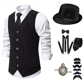 Retrò Vintage Anni Ruggenti Anni 1920 Abiti Gilet Set di accessori Gentiluomo Gangster Costume Per uomo Costume di Carnevale 5 pezzi Natale Halloween Carnevale Mascherata Cocktail party Festa a Tema
