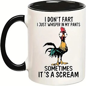 Tazza regalo divertente a forma di pollo e gallo, non scoreggio, sussurro solo tra i pantaloni e a volte è un urlo, tazza da caffè divertente, tazza da caffè originale da 11 once per ristoranti/caffè