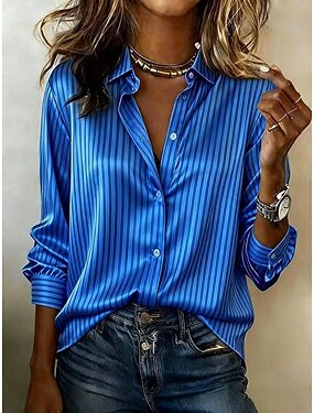 Maglietta da Donna a Maniche Lunghe Collo Rotondo a Maniche Lunghe Tunica Grafica Geometrica Striata Vintage Stile Superiori Regolari Quotidiani Stampa Bianca Blu Viola Arancione Marrone Autunno