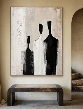 dipinto a olio fatto a mano su tela, decorazione da parete, figure astratte in bianco e nero, per arredamento di lusso, dipinto appeso con cornice allungata/dipinto arrotolato senza cornice