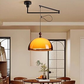 Lampada a sospensione tradizionale vintage semicircolare in legno acrilico e metallo con 1 luce e braccio oscillante per sala da pranzo