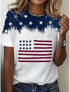 Giorno dell'Indipendenza Americana Per donna Maglietta Stampato Grafico Bandiera Elegante Classico Casual Manica Corta Girocollo Top Regolari Quotidiano Uscire Blu Rosso Estate Primavera
