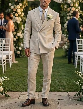 Uomo Completi in Lino Matrimonio primaverile Affari Bianco Rosa Estate Tuta Bavero a lancia Affari Formale Tinta unita Vestibilità su misura 2 pezzi Doppiopetto a sei bottoni