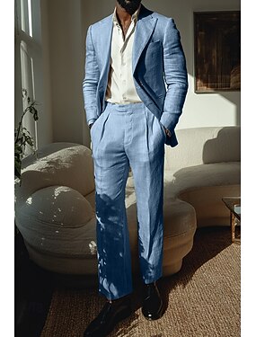 Uomo Smoking Completi in Lino Matrimonio primaverile Affari Rosa Azzurro cielo Primavera & Estate Tuta Bavero classico Moda Leggero Tinta unita Vestibilità su misura 2 pezzi Monopetto Due Bottoni