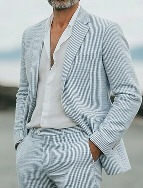 Per uomo Giacca blazer Collare di chiusura Moda Leggero Casual A righe Blazer Blazer in seersucker Rosa Azzurro cielo Verde salvia Vestibilità su misura Monopetto Due Bottoni