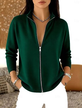 Per donna Cardigan Elegante Vintage Moda Tinta unica Collo alla coreana Lavorato a maglia Manica Lunga Top Regolari Maglia Formale All'aperto Casa Nero Rosso Primavera Autunno