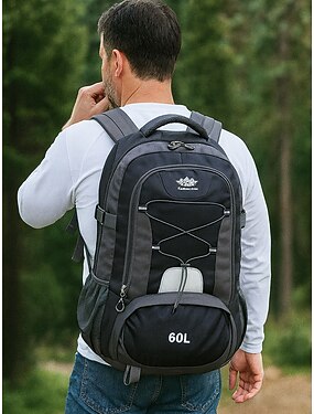 Zaino da trekking da uomo resistente all'acqua da 60 litri: zaino da viaggio per esterni di grande capacità con più scomparti per avventure in campeggio, trekking e zaino in spalla