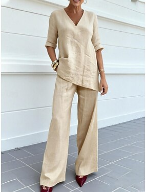 Per donna Set da due pezzi Manica Corta Scollo a V Tinta unica Elegante Vacanza Quotidiano Quotidiano Weekend Blu Bianco Verde chiaro Primavera & Estate Vestibilità comoda