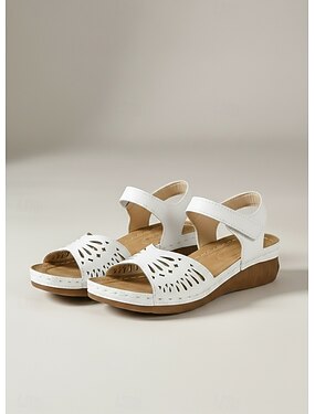sandali da donna con zeppa e punta aperta bianchi con design cut-out: scarpe comode ed eleganti per abbigliamento casual, ufficio e uscite estive