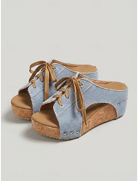 Sandali con zeppa da donna in denim blu – ciabatte casual stringate con suola platform, ideali per viaggi estivi, passeggiate e per l'uso quotidiano.