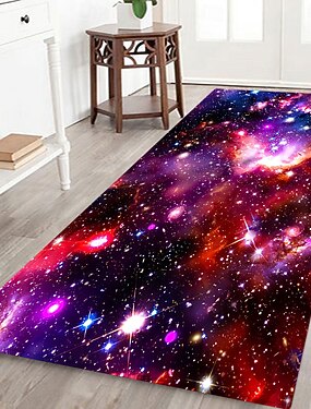 tappeto da corridoio con motivo a cielo stellato, tessuto di flanella stampato, decorazione per pavimenti per la casa, zerbino antiscivolo morbido, tappeto per ingresso e bagno