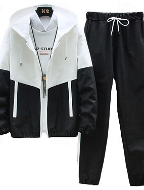 Per uomo Tuta da 2 pezzi Felpa con cappuccio Lounge Set di tute da ginnastica Con zip Blocco di colori Completo Abbigliamento Primavera Autunno Nero Blu Palestra Allenamento Corsa Vita Alta Leggero