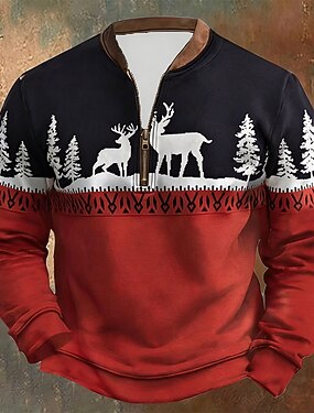 Natale Per uomo Renna Stampa Felpa con cerniera a un quarto Felpe Manica Lunga Felpa Mezza zip Vintage Retrò Stampa Ferie Uscire Stampato Autunno Inverno