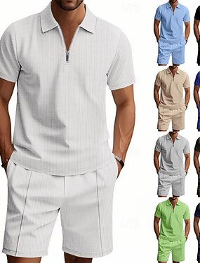 Per maschio Magliette Polo a Nido d'Ape Completi T-shirt Tuta Set pantaloncini e T-shirt Manica Corta Girocollo Estate Semplice Ginnastica Casual 2 Pezzi Zip a un quarto Casuale Vacanza Abbigliamento