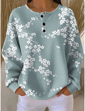 Per donna Felpa Pullover Bottoni Stampato Floreale Grafico Geometrico Vintage Casual Manica Lunga Girocollo Top Regolari Casuale Streetwear Abbigliamento Quotidiano Blu Blu chiaro Bianco Arancione