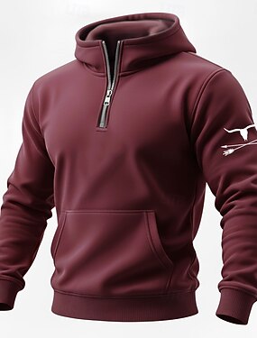 Per uomo Mucca Felpa con Cappuccio Felpa Moda Quotidiano Classico Casual Girocollo Zip a un quarto Casa All'aperto Abbigliamento casual alla moda Blu Blu chiaro Borgogna Verde Menta Grigio Con zip