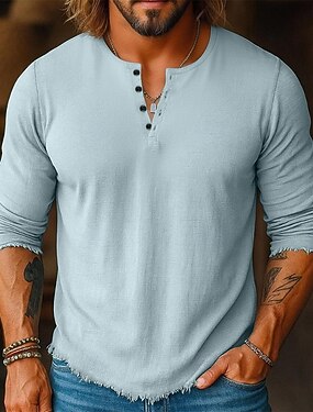 Per uomo Camicia in cotone e lino Maglia Henley Maglietta Top Henley Manica Lunga Tinta unica Semplice Tinta unita Moda Designer Casual Blocco di colore Bottoni Henley All'aperto Casuale Quotidiano
