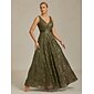 Abito Maxi in Paillettes da Donna Abito A Forma di A Abito Senza Schienale Elegante Festa Compleanno Colore Solido Senza Maniche Collo a V Oliva Estate Primavera
